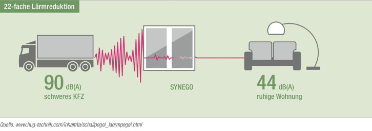 Mit SYNEGO fühlen Sie sich wohl - unabhängig davon, wie laut Ihre Umgebung ist. Dank individuellen Schallschutzmaßnahmen schließen Sie Lärm einfach aus, Ihr Zuhause wird zur Ruheoase.